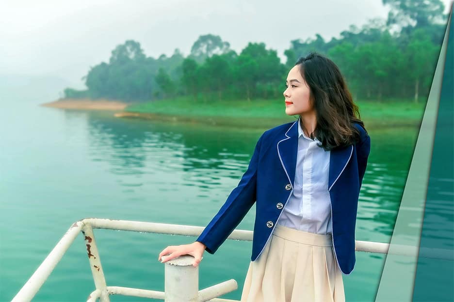 Woman Lake Nature Smile Ponder