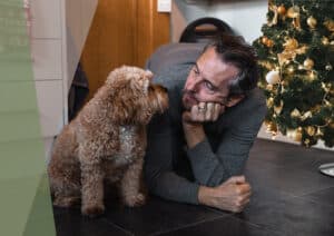 Man Sad Dog Christmas